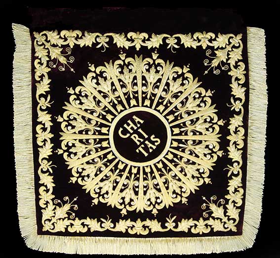 -HERMANDAD DE PASIÓN (Sevilla). Restauración y pasado a nuevo terciopelo del estandarte, restauración del simpecado Sacramental, restauración y pasado a nuevo tul de la toca de la Virgen del Voto, pasado a nuevo terciopelo de los faldones del paso de palio, Restauración de la clámide, restauración del Estandarte del 8ºcentenario de la Orden de la Merced y del manto de cultos.
