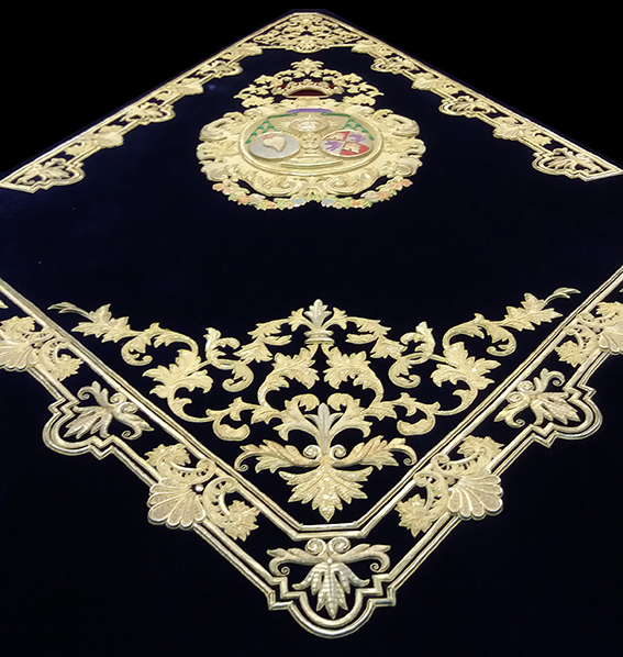 -HERMANDAD DE LA VIRGEN DEL ÁGUILA (Alcalá de Guadaira, Sevilla). Restauración del manto de salida de la Virgen del Águila.