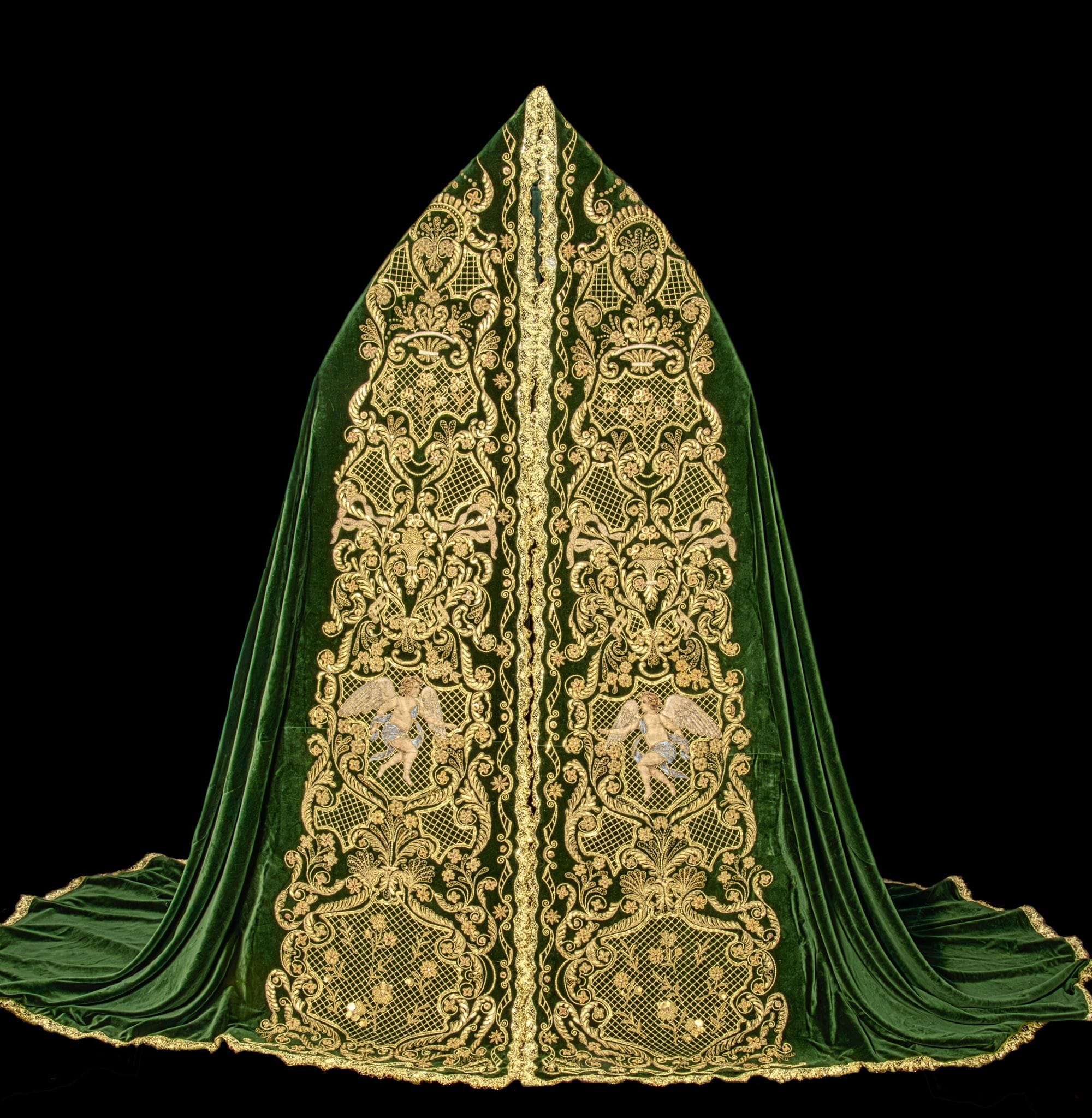 -PATRONA DE FUENTE DE ARCO (Badajoz). Restauración del antiguo manto de salida de la Virgen del Ara.